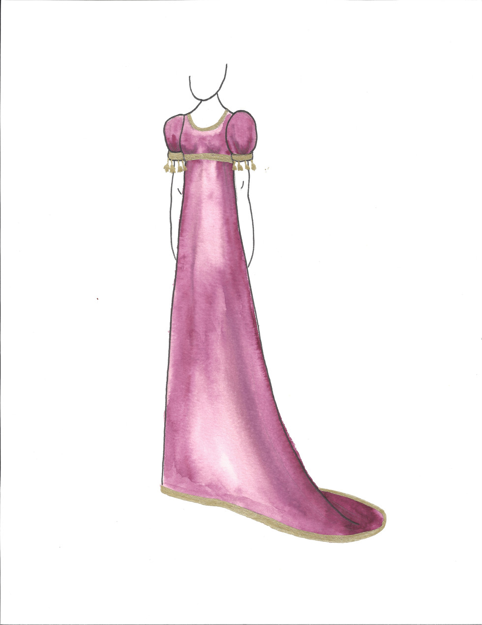 This regency gown was my first foray into the more historic of historic silhouettes. With this project I wanted to explore the silhouette of the arrow specifically the dropped shoulder scene and using trims as an ornamentation. I also used a silk polyester fabric and a combination of upholstery trims.